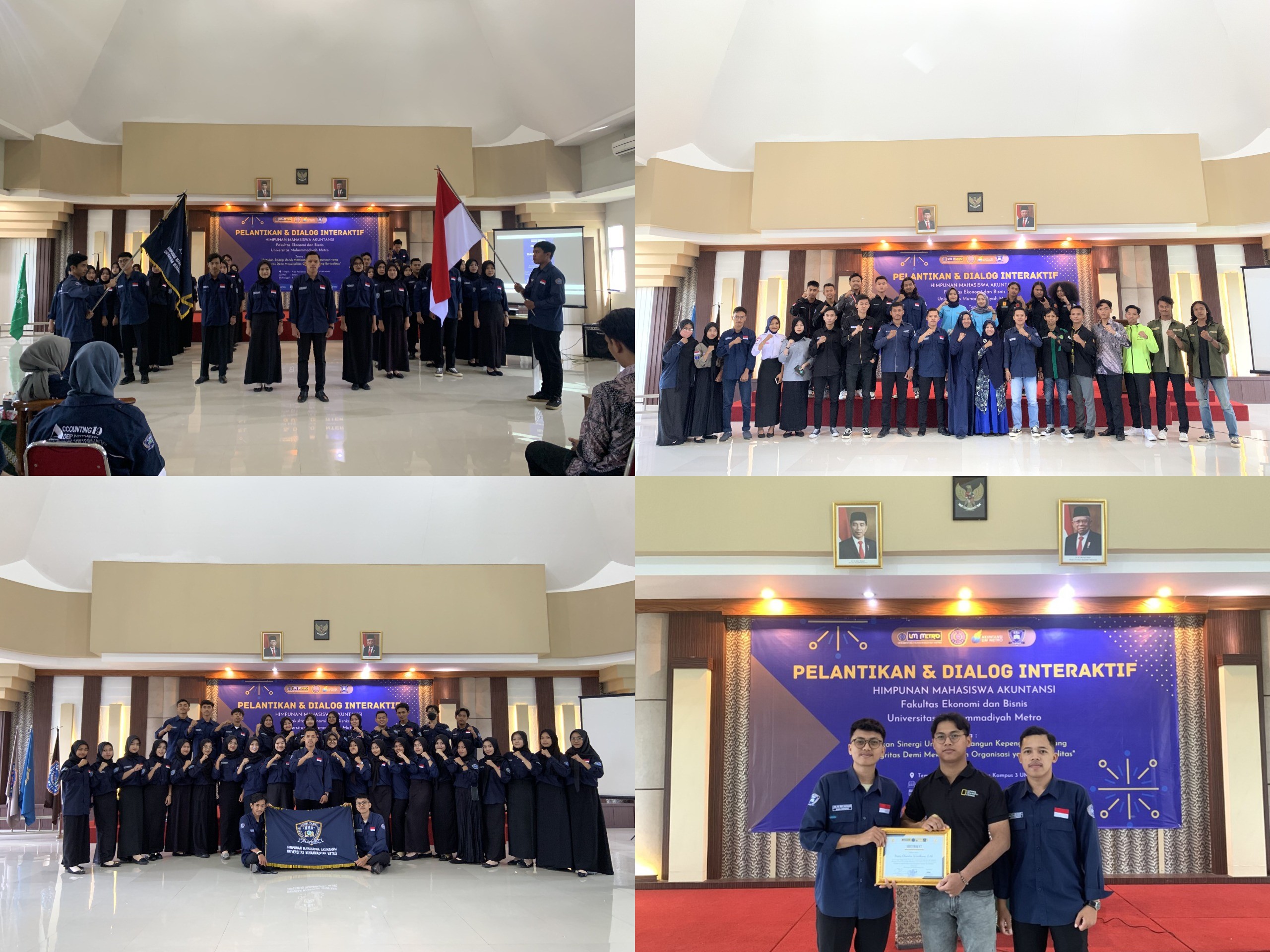 METRO - Pada tanggal 3 Desember 2022, Himpunan Mahasiswa Akuntansi (HMA) Universitas Muhammadiyah Metro mengadakan pelantikan pengurus HMA periode 2022/2023. Acara ini dilaksanakan di Aula Gedung Pascasarjana, Universitas Muhammadiyah Metro. Kegiatan ini dihadiri oleh dosen, demisioner HMA dan tamu undangan seperti UKM dan HMJ di lingkungan Universitas Muhammadiyah Metro. Selain itu juga, para mahasiswa perwakilan angkatan di program studi S1 Akuntansi juga turut hadir.