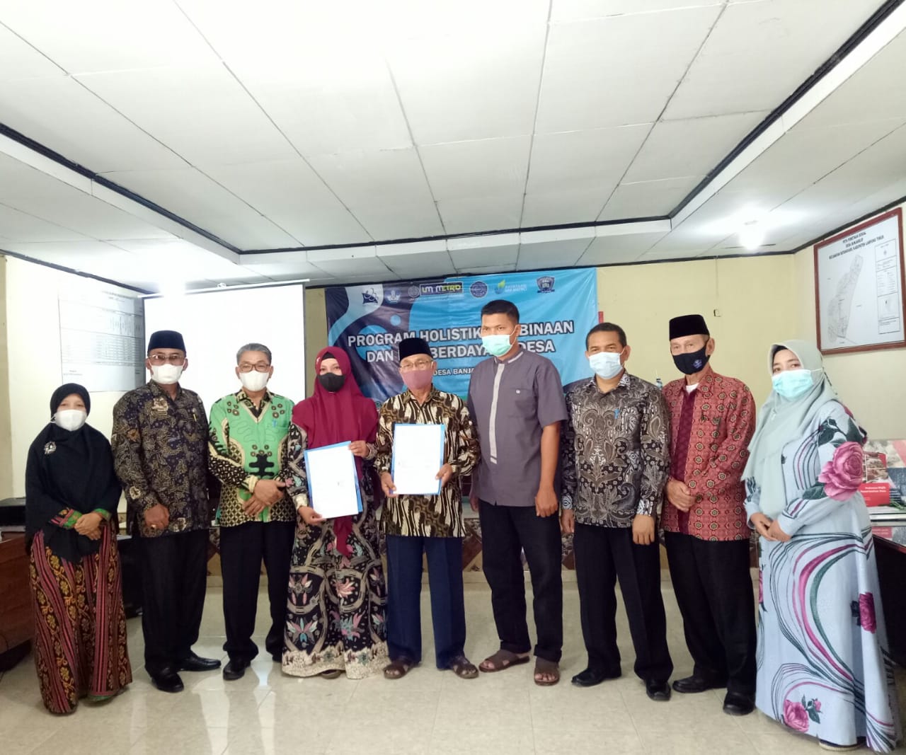 BANJARREJO LAMPUNG TIMUR, Sejumlah 10 mahasiswa Himpunan Mahasiswa Akuntansi (HMA) Universitas Muhammadiyah Metro bergerak membangun desa dengan beberapa program yang telah disiapkan dibawah bimbingan Elmira Febri Darmayanti, S. E., M.A.B. selaku Kaprodi Akuntansi. Pada hari Minggu 25 Juli 2021 HMA melaksanakan Launching Program Holistik Pembinaan dan Pemberdayaan Desa (PHP2D) serta penandatanganan MOU, MOA, IA di Balai Desa Banjarrejo, Kecamatan Batanghari, Kabupaten Lampung Timur.