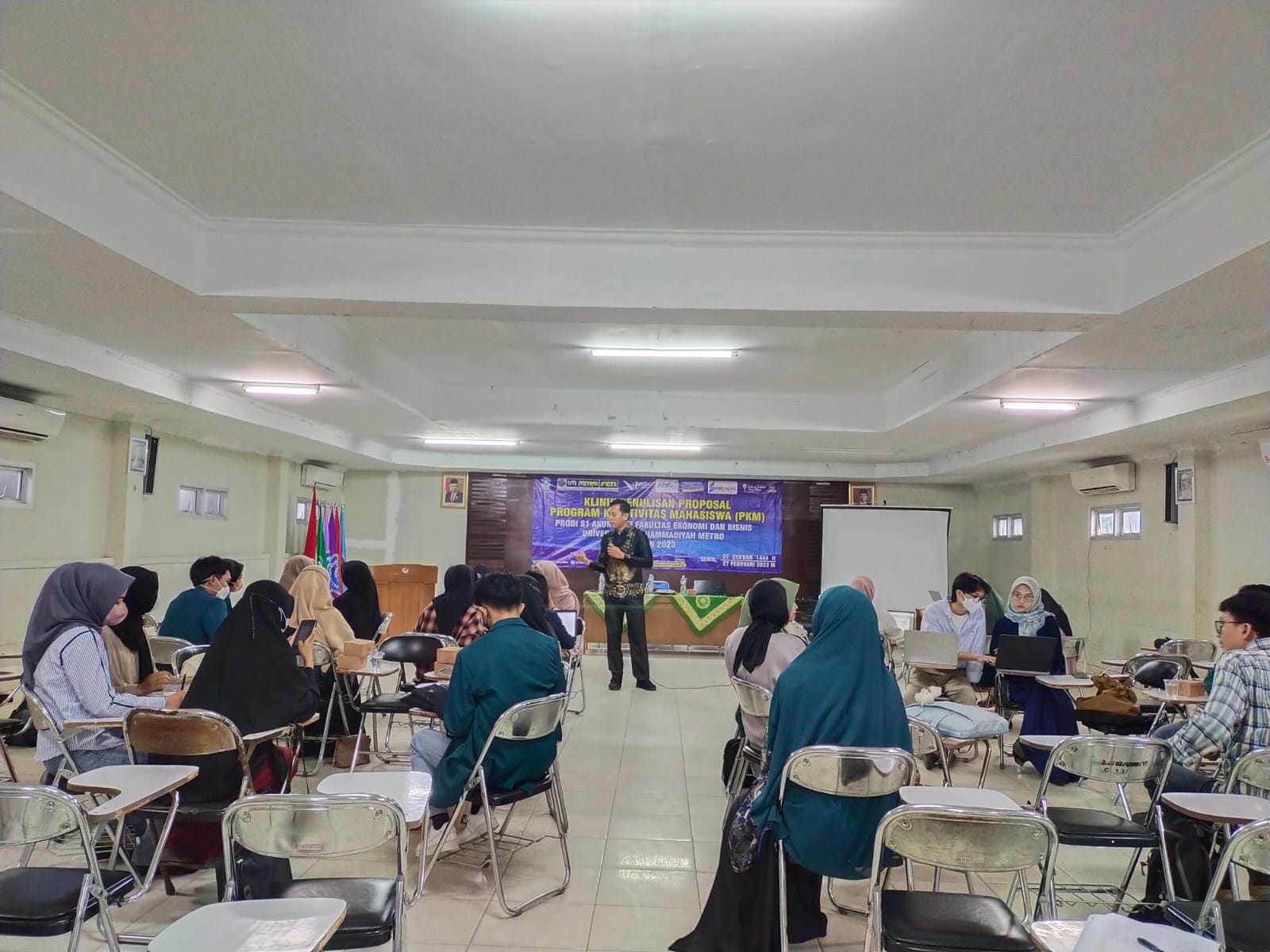 Acara ini menghadirkan Bapak Riswanto, M.Pd.Si selaku kepala Pusat Pengabdian kepada Masyarakat (PPkM) LPPM UM Metro dan juga Ibu Elmira Febri Darmayanti, S.E., M.A.B., selaku ketua Program Studi S1 Akuntansi, selaku pemateri. Baik Bapak Riswanto, maupun Ibu Elmira, merupakan reviewer nasional dalam Program Kreativitas Mahasiswa. Dalam penjelasannya, Pak Riswanto menjelaskan tentang tata cara penulisan proposal yang baik sesuai dengan ketentuan serta memberikan tips dan trik agar proposal yang dibuat dapat lolos hingga didanai. Seperti yang kita ketahui, selain ide dan judul yang menarik, penulisan proposal juga merupakan poin penting yang menentukan lolos atau tidaknya di Program Kreativitas Mahasiswa ini.