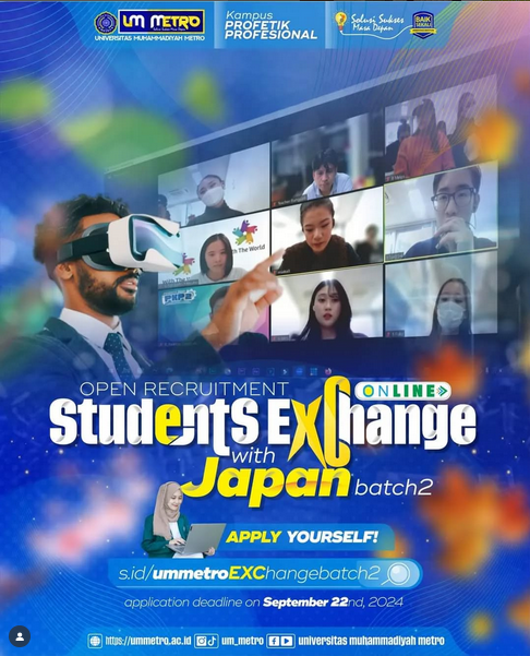 Program pertukaran pelajar ini merupakan kerja sama antara Universitas Muhamamdiyah Metro dan Pemerintah Jepang. Mahasiswa terpilih akan mengikuti perkuliahan selama 1 semester di Jepang, sekaligus mengenal budaya dan kehidupan sosial masyarakat Jepang secara langsung.